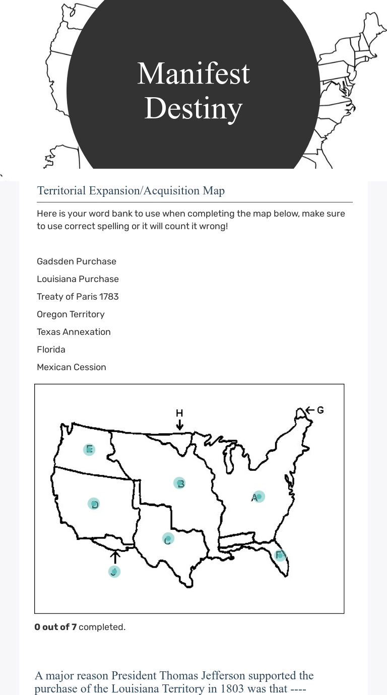 The louisiana purchase map worksheet with answer keythomas jeffersonsocial studies distance.